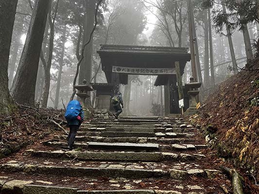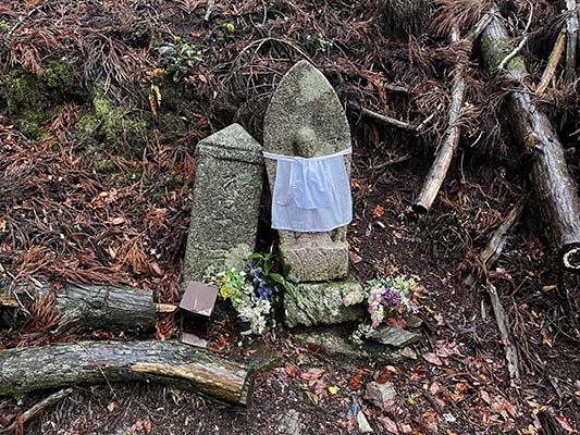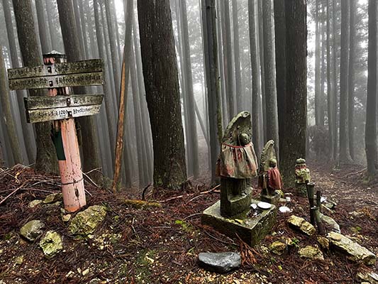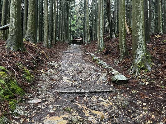 ただ雨に濡れにくいのはいいのですが、細い山道なのでかなり邪魔になります。人を出会わなかったことと愛宕山の表参道に出てからは、道幅が広くなるので大丈夫なのですが…結局下山した時は傘の骨が3〜4本折れて、もはや傘の体を成していませんでした。