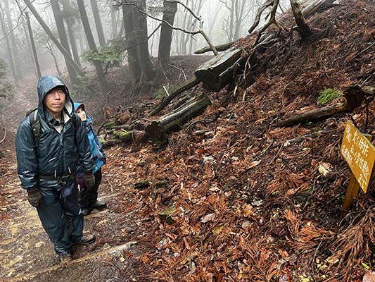 私達も負けじ?と楽しい会話をしながら下山しました。上部で風雨が激しくなってきたのでそそくさとツツジ尾根をおりました。