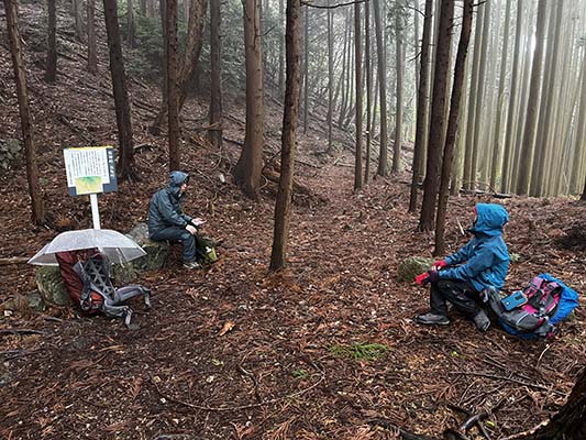 通常山道では、安全のために両手をあけることが基本なのですが、足元が比較的安定している時ならアリかな、と、雨が降っていない時はストック代わりにもなりますので、以外に重宝します。
