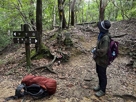ヤケオ山から釈迦ヶ岳はちょっとした痩せ尾根を通り、少し登ったところにあります。