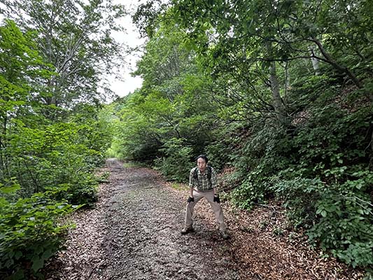 林道へ下り立ち、そこから長い林道を歩きます。