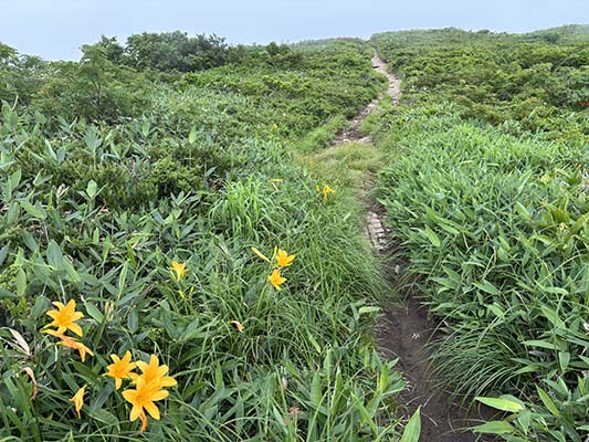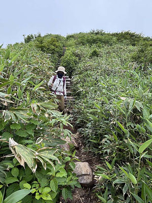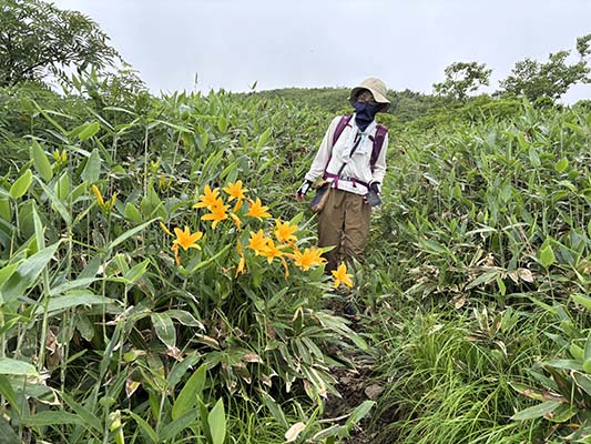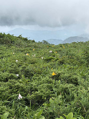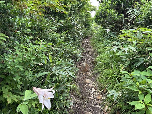 赤兎山までは結構な急登をのぼり、約1時間で頂上へ!道中にはササユリの群落が出迎えてくれています。