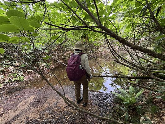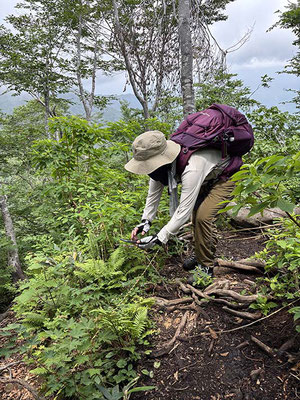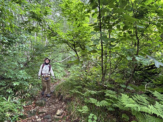 山では良くクマに会いますが、ほとんどはこんな感じです。この頃は里に下りてくるクマは親から間違った教育を受けているのが多く、ちょっと困った事象が起こっていますが… この時期しか見られない花もあり、鹿の食害もない私のお気に入りの山で、お客様にはぜひ登っていただきたく、この山行を企画しました。