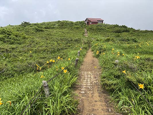 でも1日花のニッコウキスケが本当にイキイキときれいです。遠かったけど、本当に来てよかった! 避難小屋からは約2時間で駐車場へ下山し、今回は石川県の白峰温泉まで行きました。