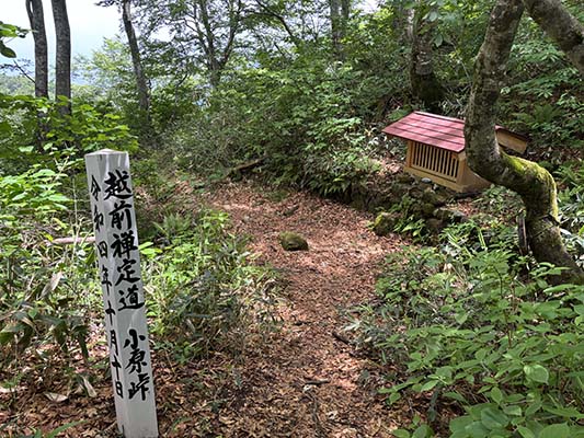 越前禅定道のお地蔵さんには新しい祠が建っていました。