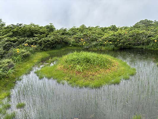 途中の赤池湿原ではイワイチョウとモウセンゴケが彩りを添えてます。