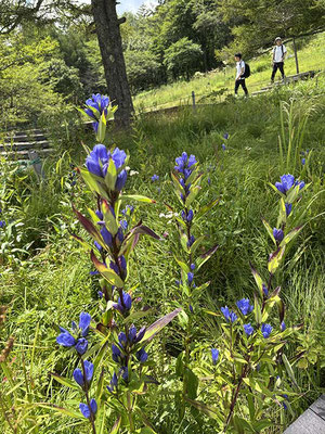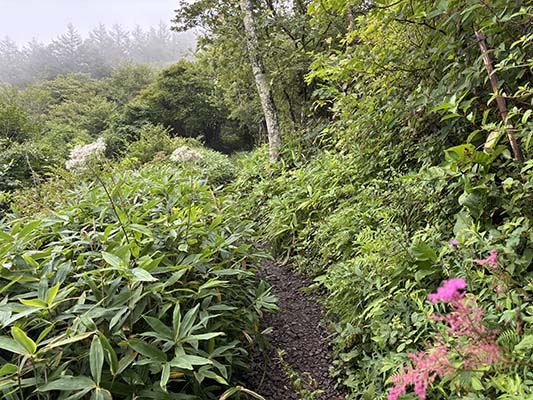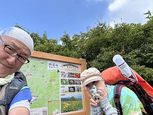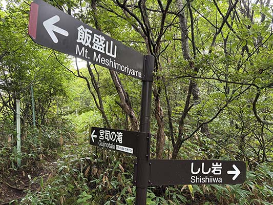 獅子岩にある広大な登山者用駐車場に車を停め、飯盛山を目指します。 1500mほどあるこの山はこの時期は高山植物の宝庫です。