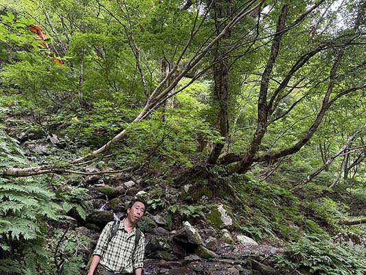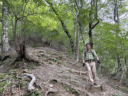 夜叉ヶ池から下、谷までの道は急登ですが、ブナをはじめ緑が美しい場所です。