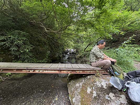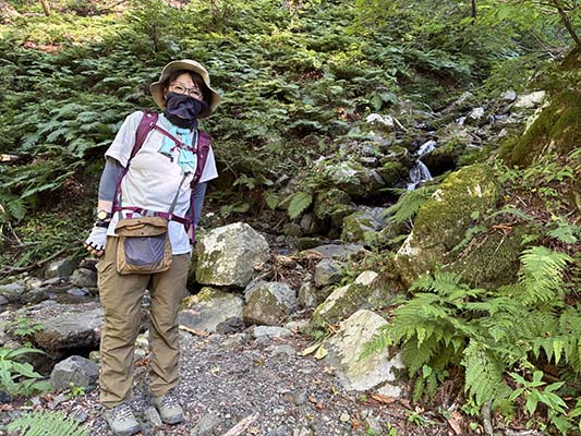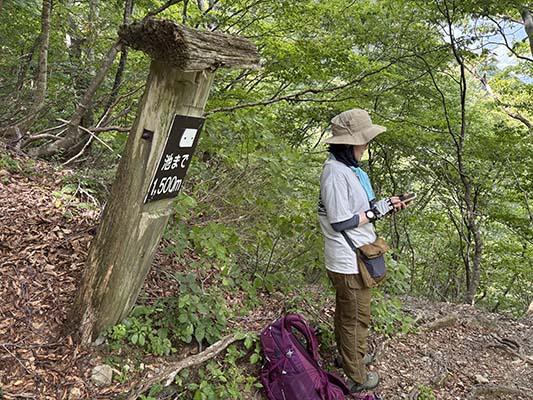 川沿いは涼しく快適です。十分の休憩後そこから約標高差500mの登りが続きます。