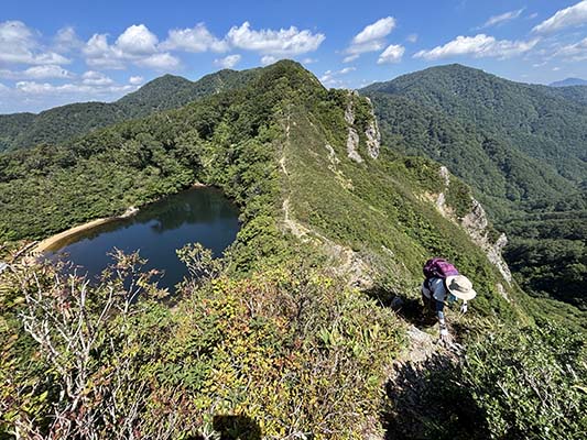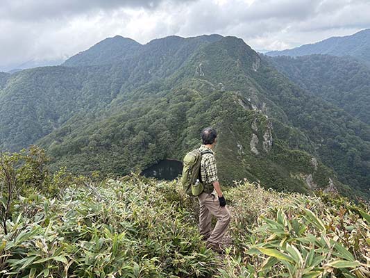 22年に、やまやで岐阜県側から三周ヶ岳を目指した際に訪れた場所ですが、あまりの薮の濃さに三周ヶ岳の一つ手前の尾根で引き返した覚えがあります。