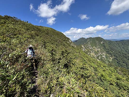 夜叉ヶ池山から先の三国岳までは残雪期しか行けないのですが、その先も藪が多いものの少しだけ道らしきものがあります。